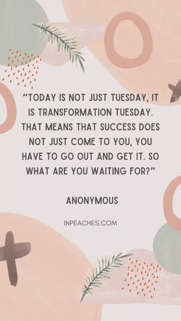 Today is not just Tuesday, it is Transformation Tuesday. That means that success does not just come to you, you have to go out and get it. So what are you waiting for?